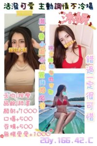 服務:舌吻.品鮑.殘廢澡.舔蛋.按摩.奶炮.無套吹 情趣按摩(自備).角色扮演(自備)